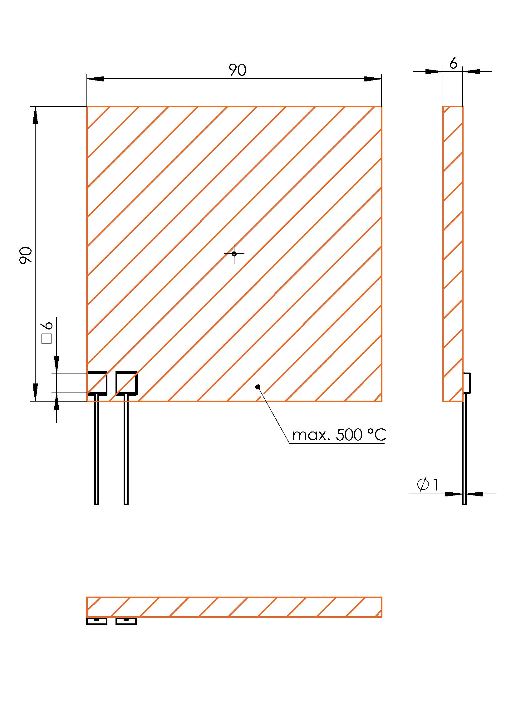 | Beheizter Bereich | 90 x 90 x 6,0 mm |