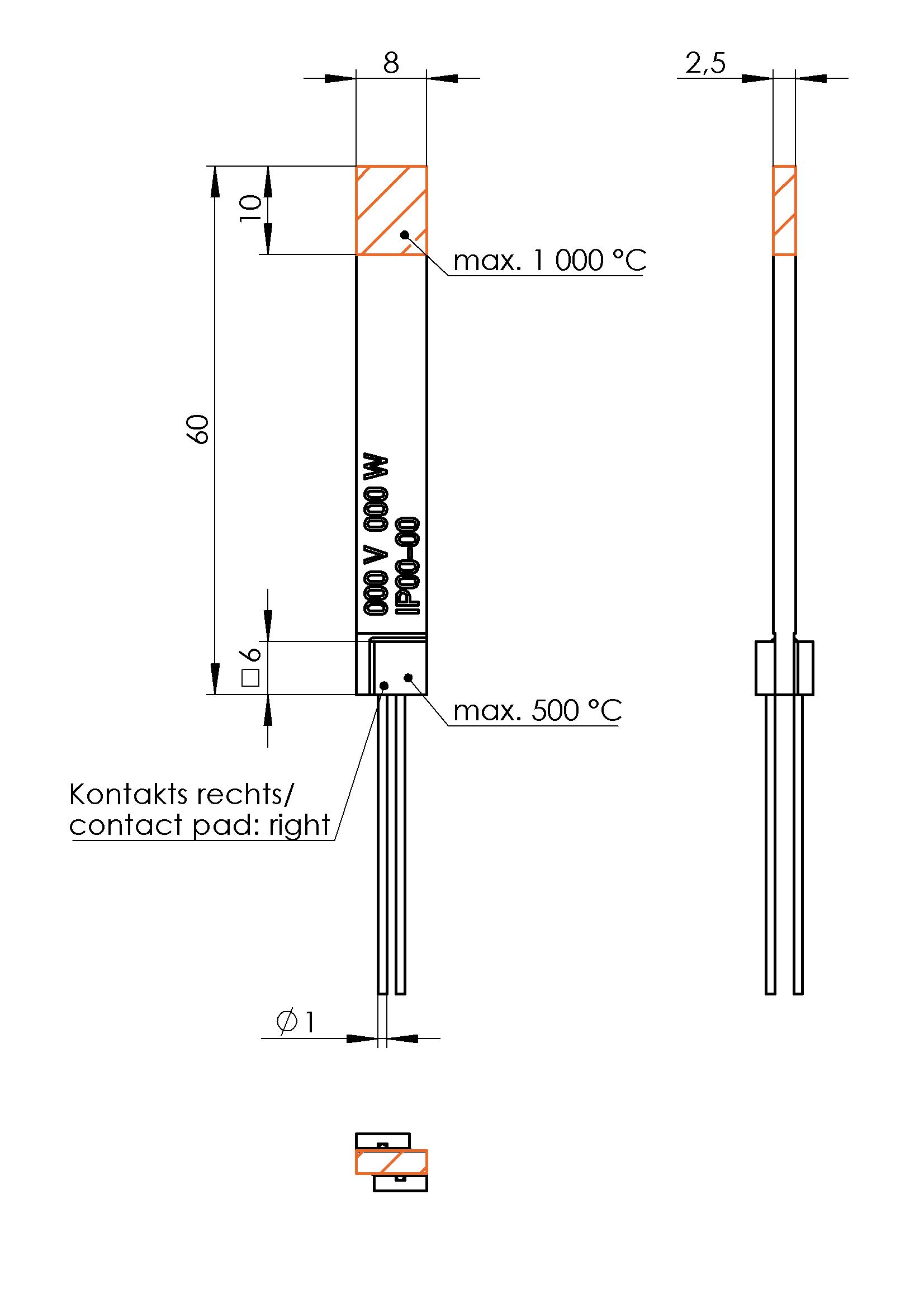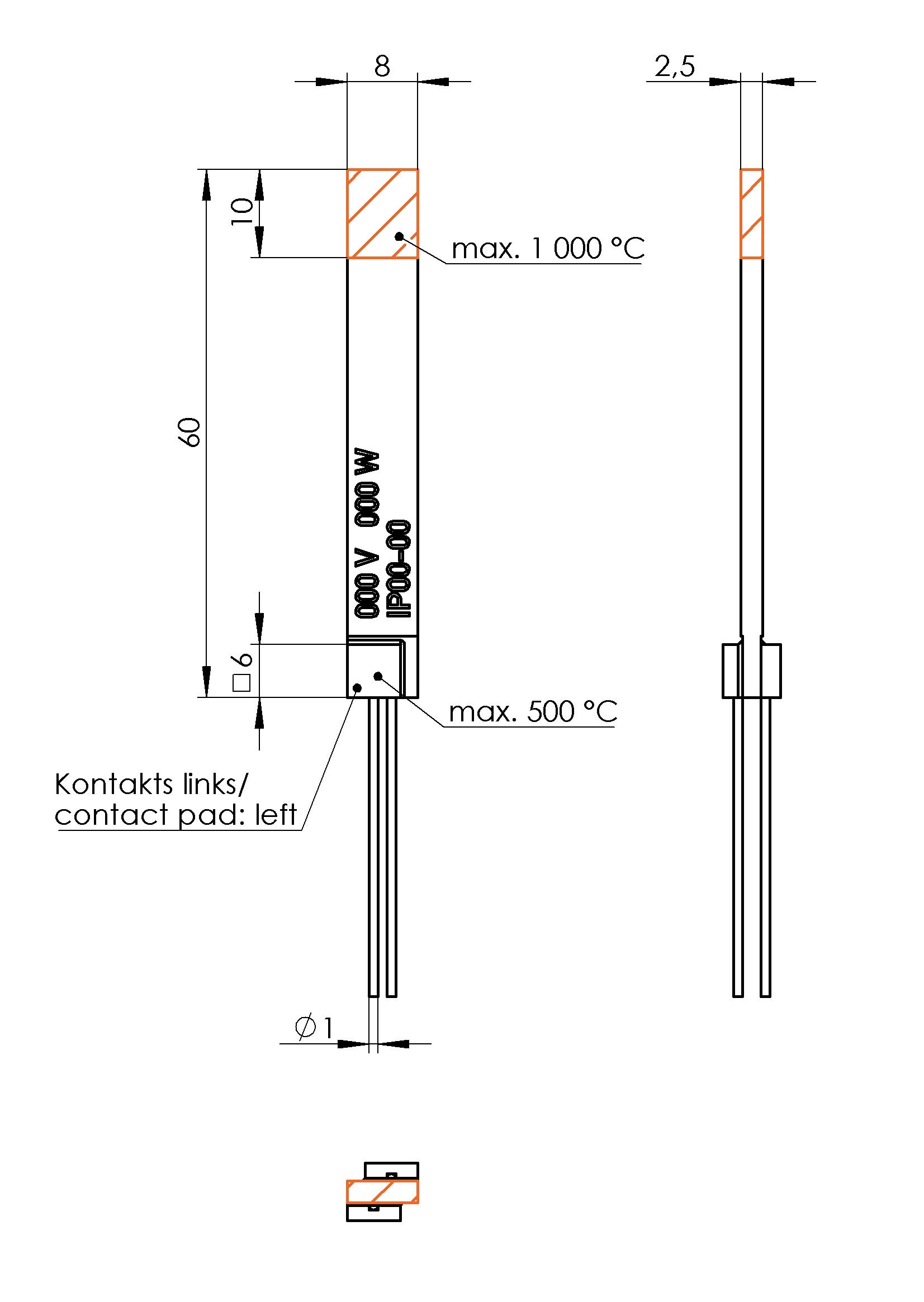 | Beheizter Bereich | 10 x 8,0 x 2,5 mm |