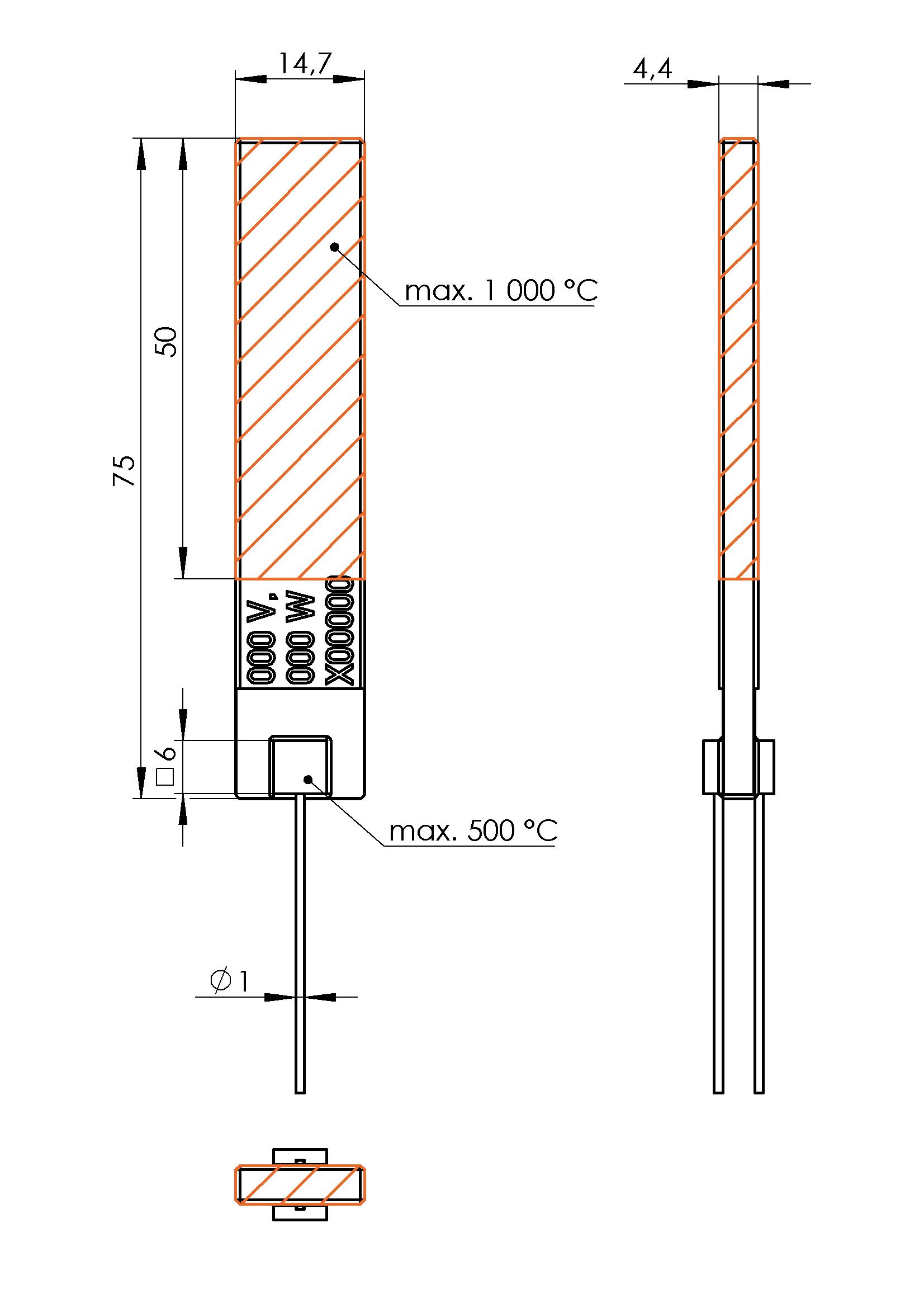| Beheizter Bereich | 50 x 14,7 x 4,4 mm |