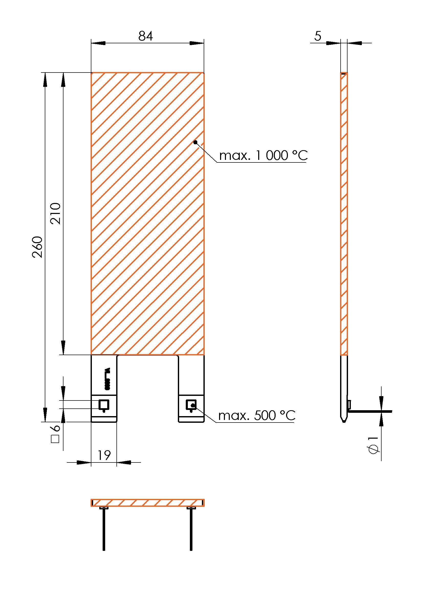 | Beheizter Bereich | 210 x 84 x 5,0 mm |